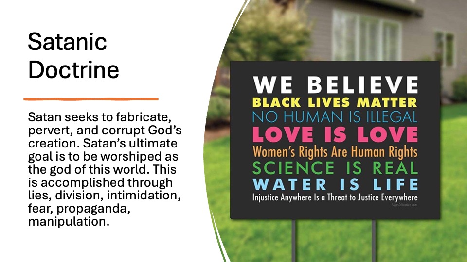 - Uses transgenderism as an example of how Satan’s influence leads to the perversion of God’s creation.
